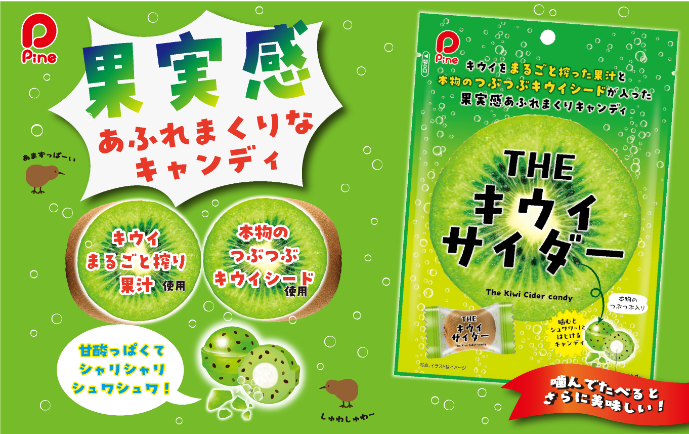 パインアメのメーカーであるパイン株式会社(本社:大阪市天王寺区、代表取締役社長:上田真弘)は、これからの季節にぴったりな果実感あふれまくりな爽やかキャンディ「THE キウイサイダー」を2026年3月9日(月)より販売を開始いたします。