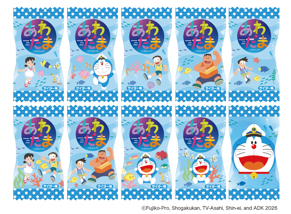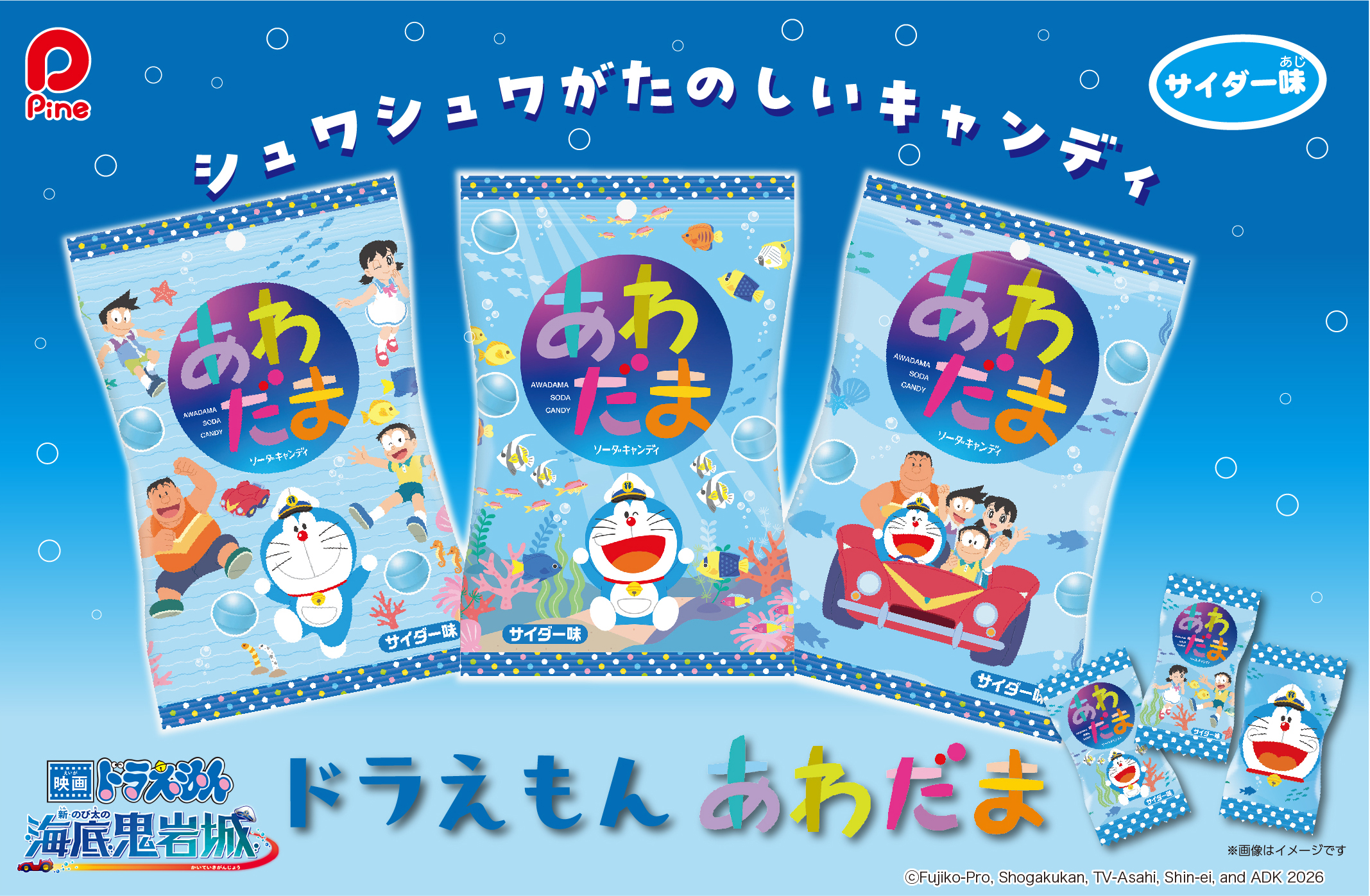 ソーダキャンディのパイオニアとして39年間製造を続けている「あわだま」。2026年2月27日(金)に公開の『映画ドラえもん 新・のび太の海底鬼岩城』の公開を記念して、映画の世界観をパッケージにデザインした「ドラえもん あわだま」を数量限定で発売いたします。